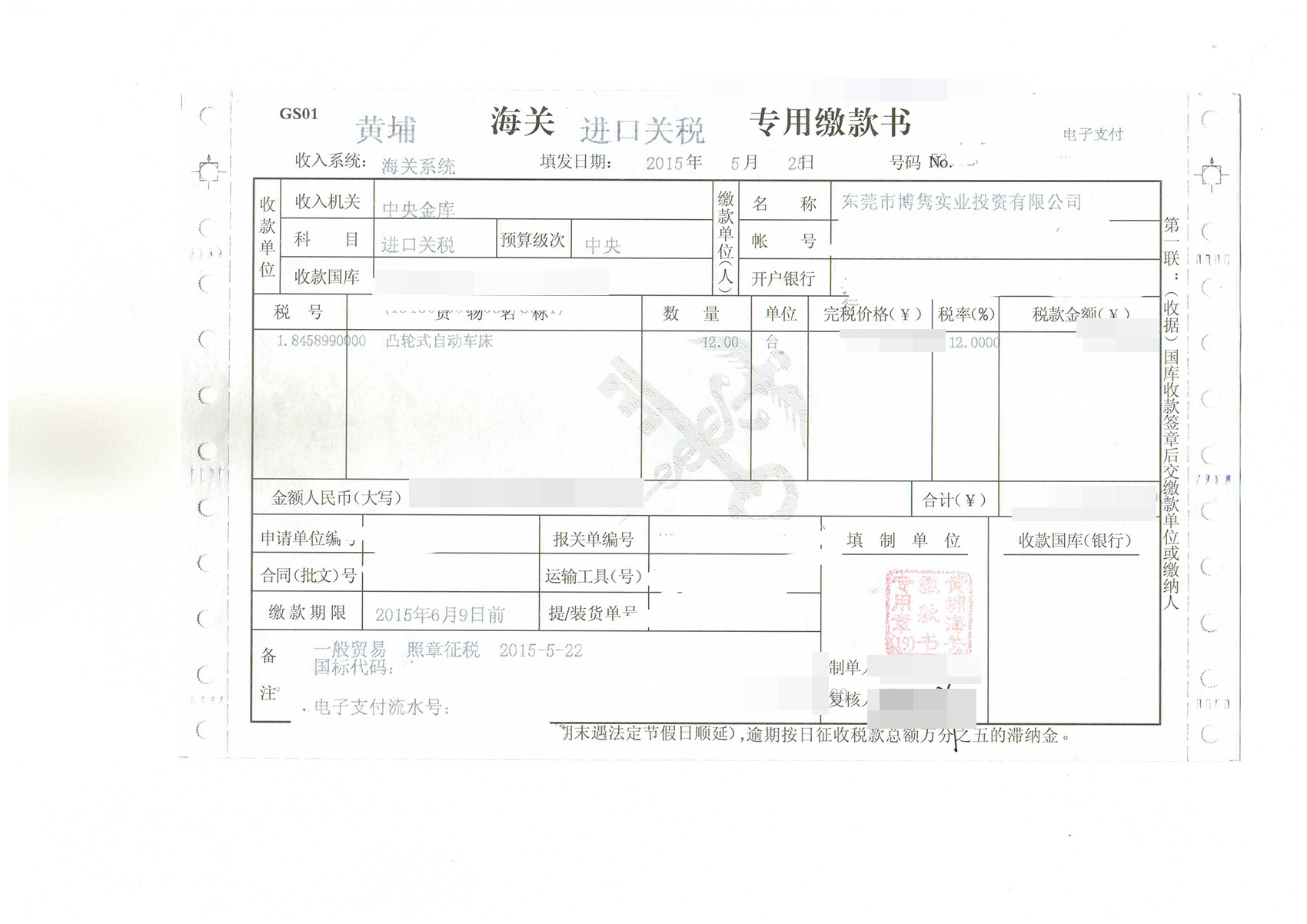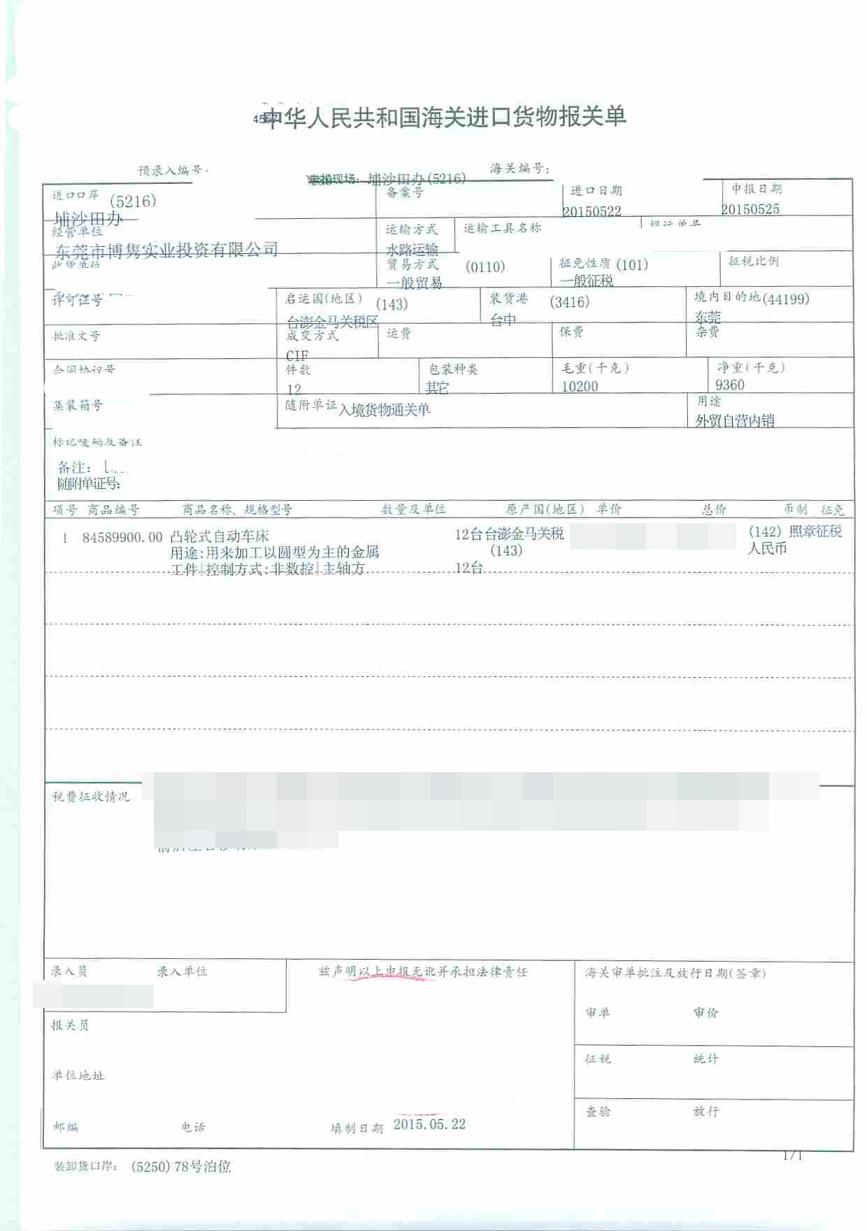 三、自動車床進口報關(guān)案例展示