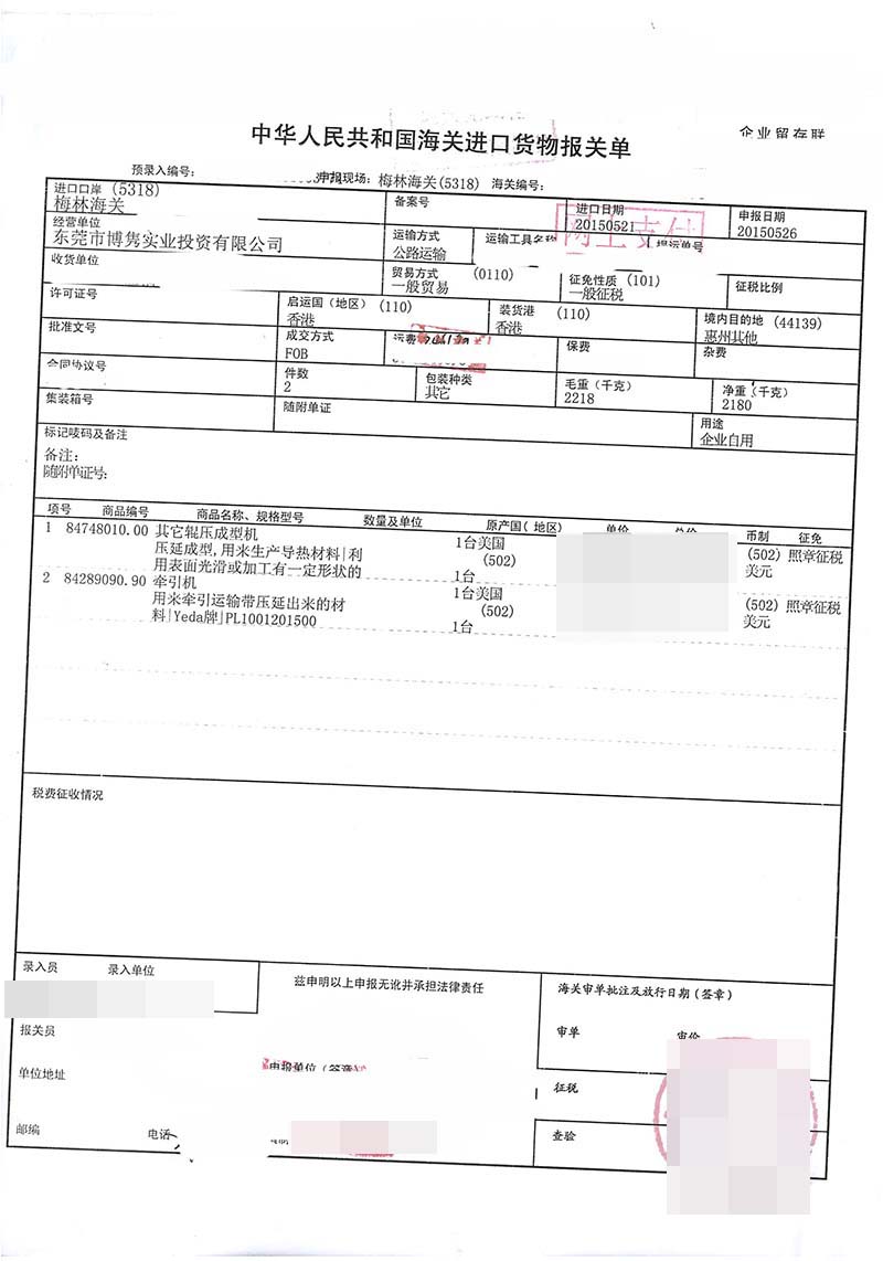 三、成型機(jī)進(jìn)口報關(guān)案例展示