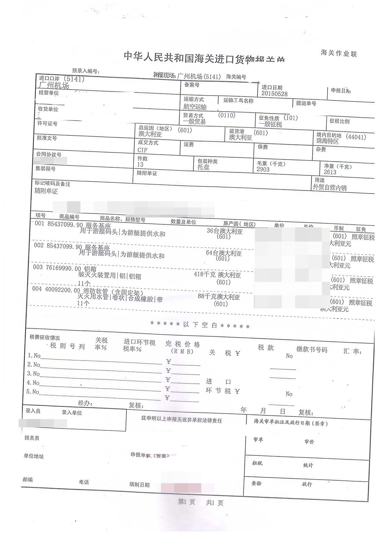三、服務基座進口報關案例展示