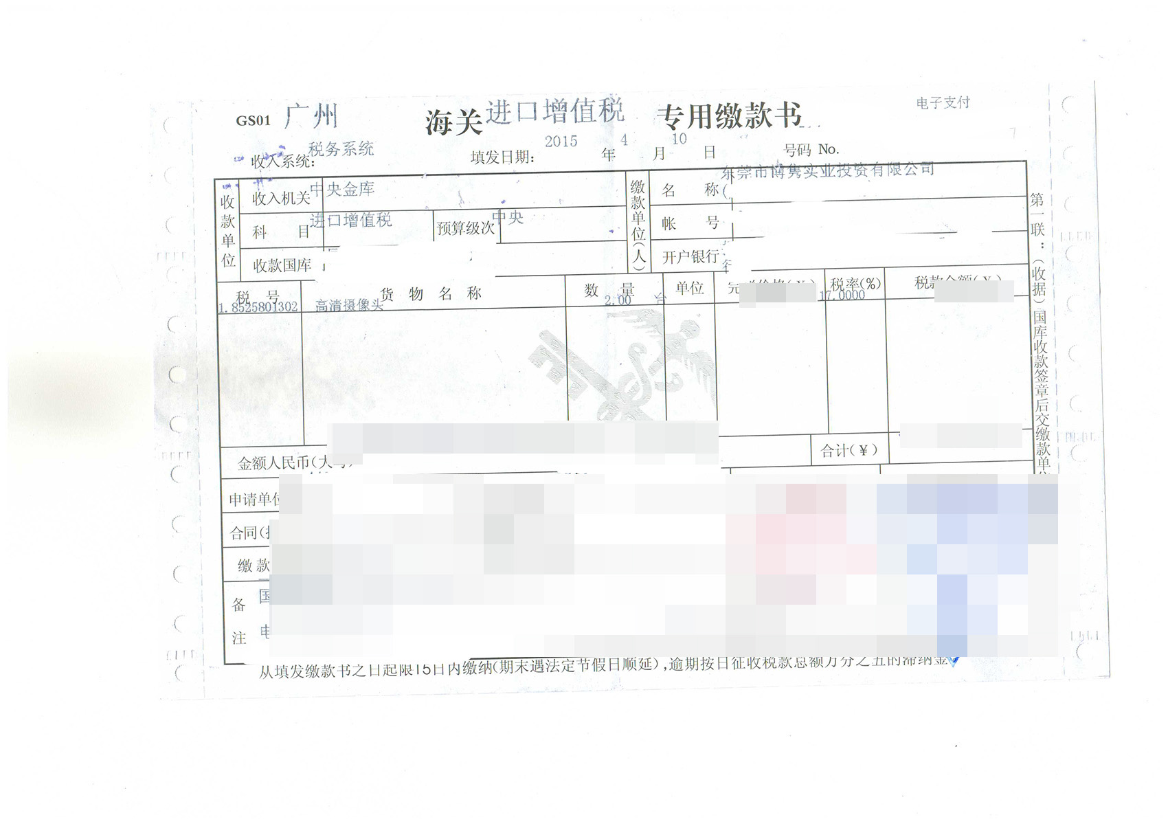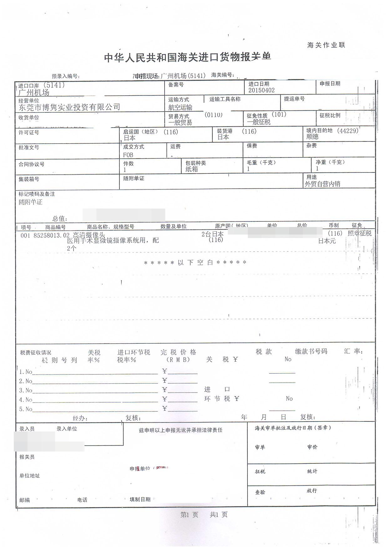 三、高清攝像頭進口報關(guān)案例展示